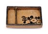 Die Keramik ist rechteckiges Essgeschirr mukōzuke. In der großen Fläche befindet sich eine Chrysantheme in schwarzer Pinselmalerei. Das Geschirr bildet ein Paar mit V/1456.